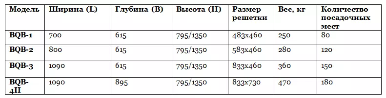 Комплектуются двумя стандартными решетками из пищевой нержавеющей стали или из чёрной стали, а также: щеткой, совком, кочергой, щипцами, искрогасителем с колпаком.